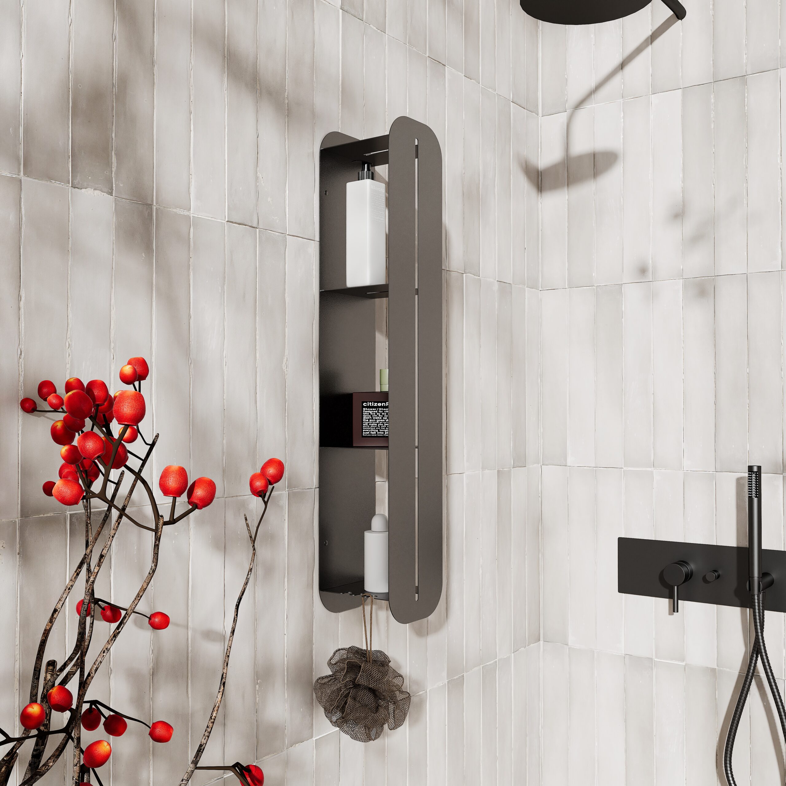 Space-saving and practical: narrow design (height 80 cm, width 15 cm, width 14 cm) offers plenty of storage space for shampoo storage and bathroom accessories without taking up much space. Waterproof and easy to care for - The powder-coated surface is easy to clean, water and rust resistant - perfect for wet areas.