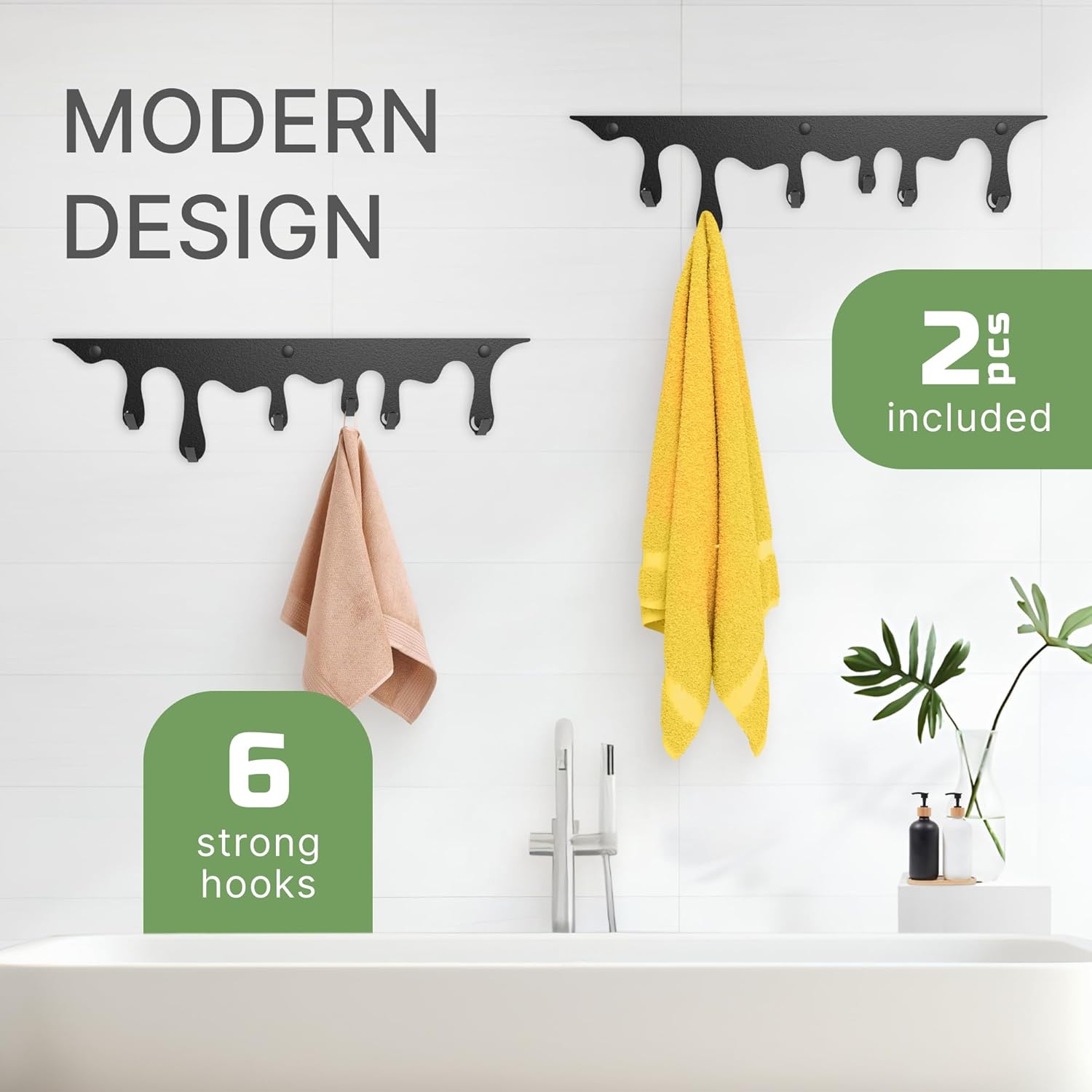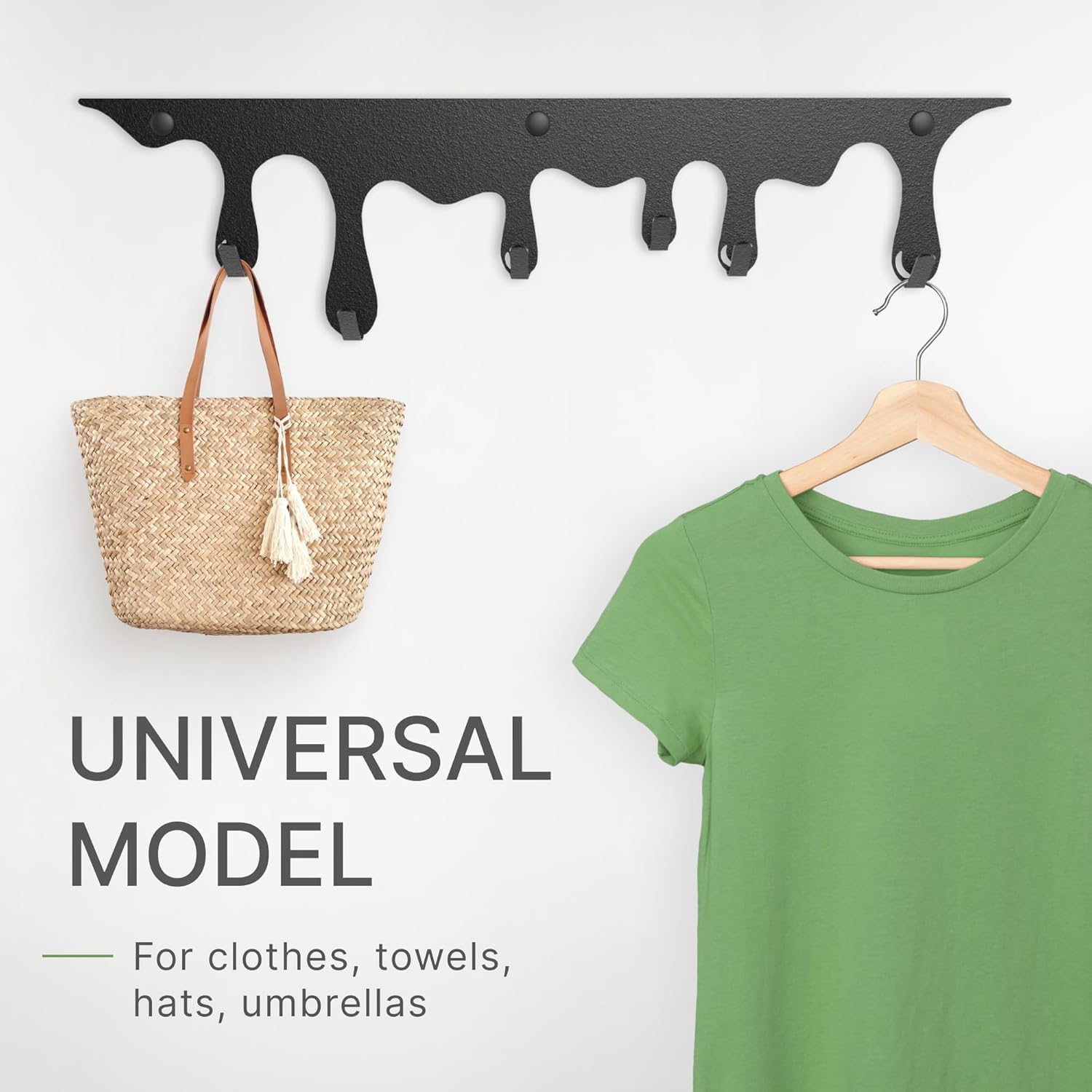 Black coat rack wall mounted with 6 hooks