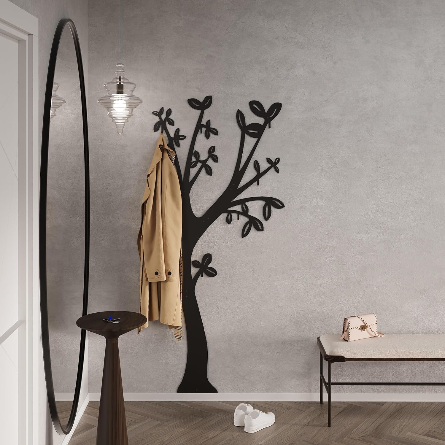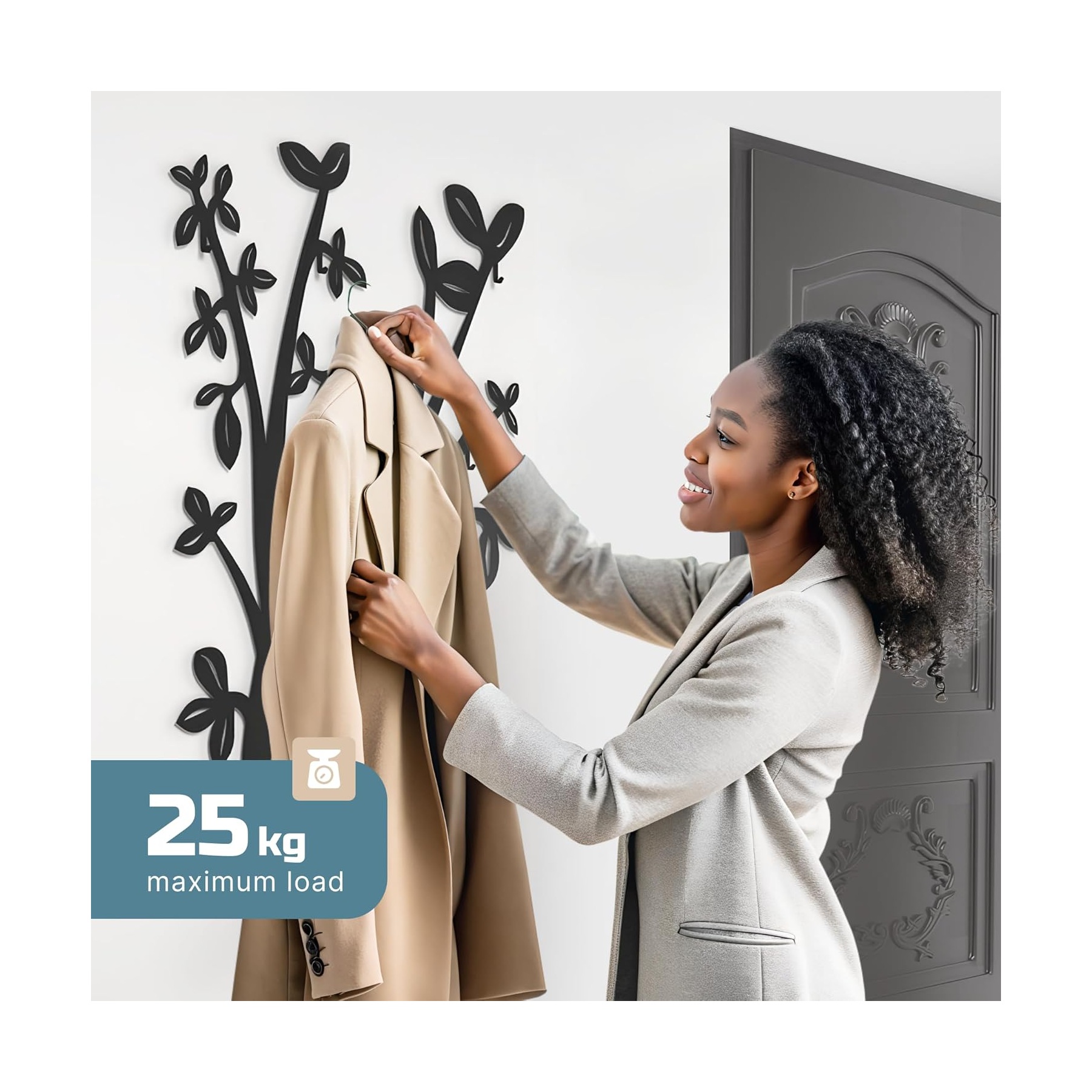 Bring elegance and functionality into your home with this unique wall-mounted coat rack. Its sleek black silhouette adds a modern yet natural charm to any entryway, transforming everyday organization into a stylish statement.